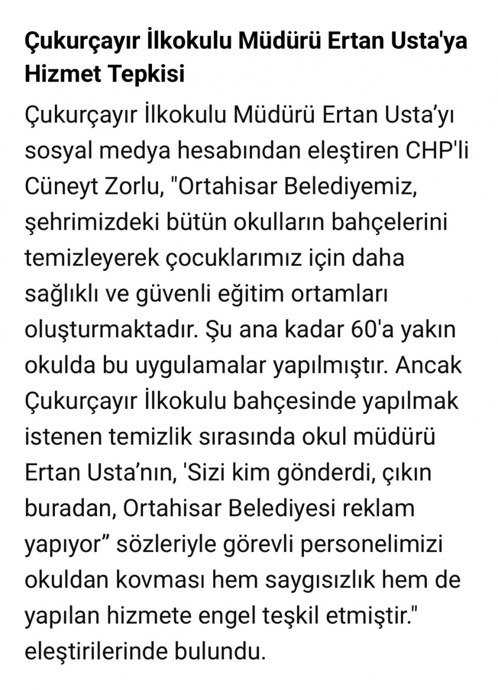 Çukurçayir ilkokulu Müdürü Ertan Usta'ya Hizmet Tepkisi
