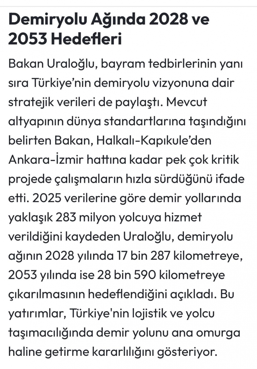 Demiryolu Ağında 2028 ve 2053 Hedefleri