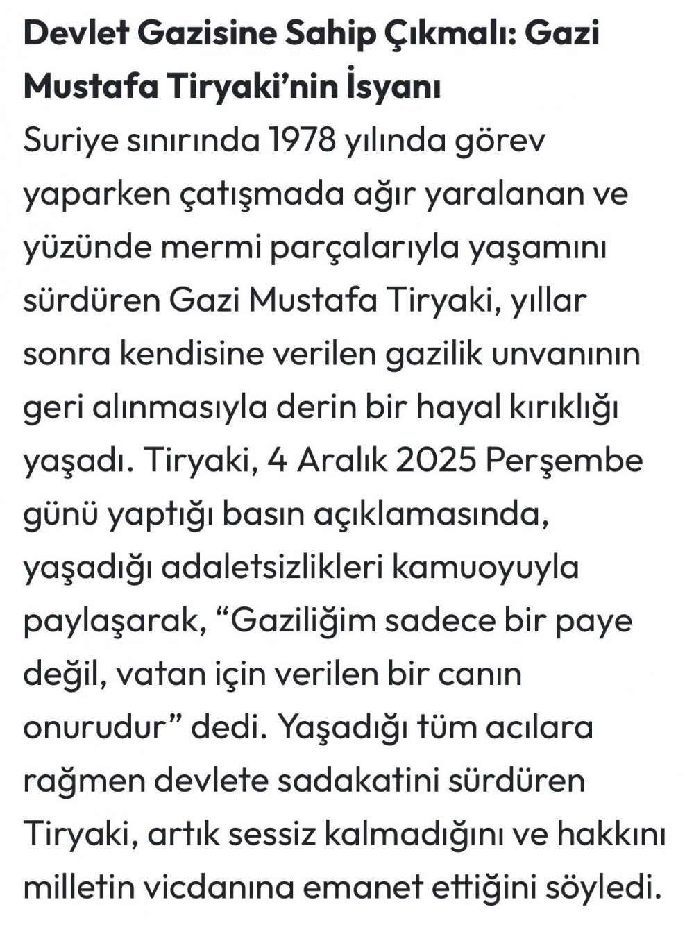 Devlet Gazisine Sahip Çikmali: Gazi Mustafa Tiryaki'nin Isyani
