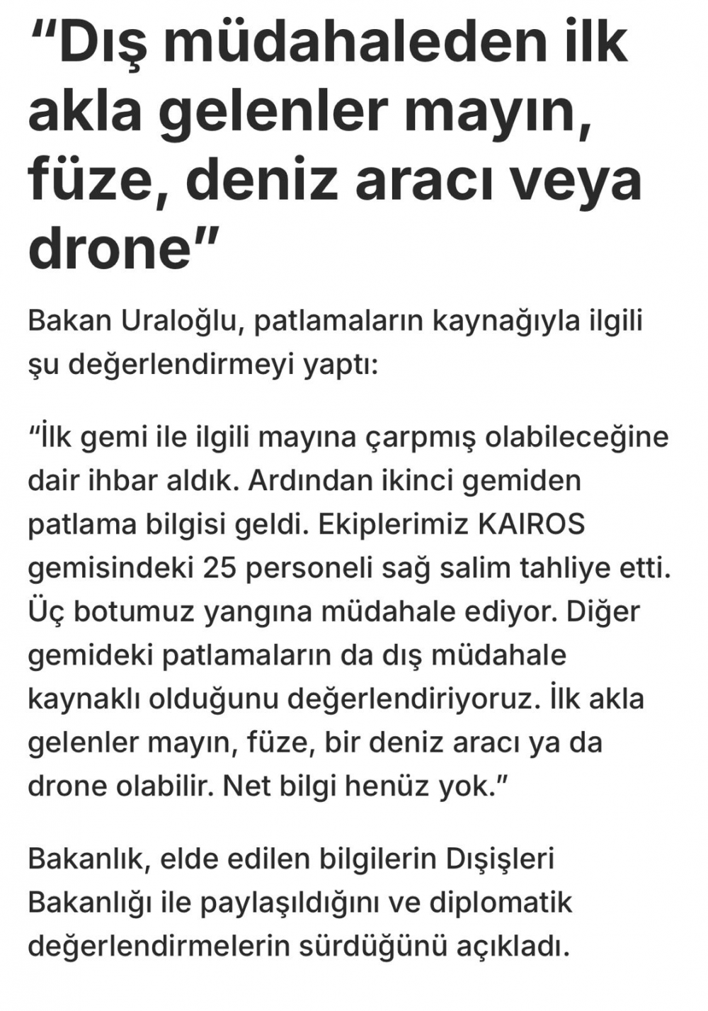 "Dis müdahaleden ilk akla gelenler mayin, fuze, deniz araci veya drone"