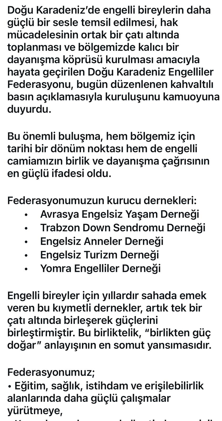 Doğu Karadeniz engelli federasyonu kuruldu.