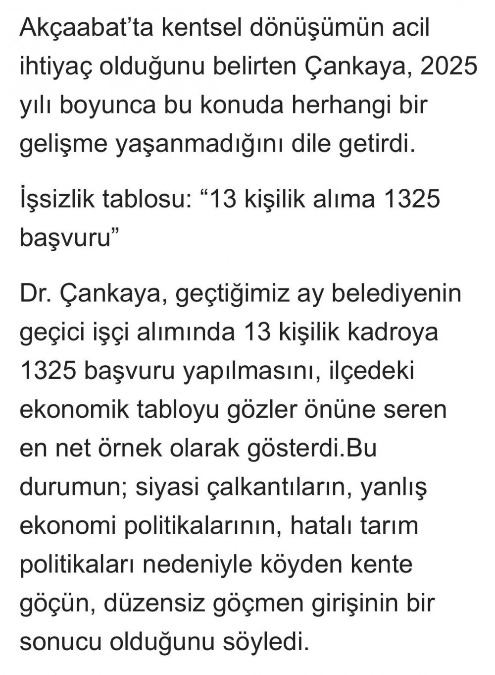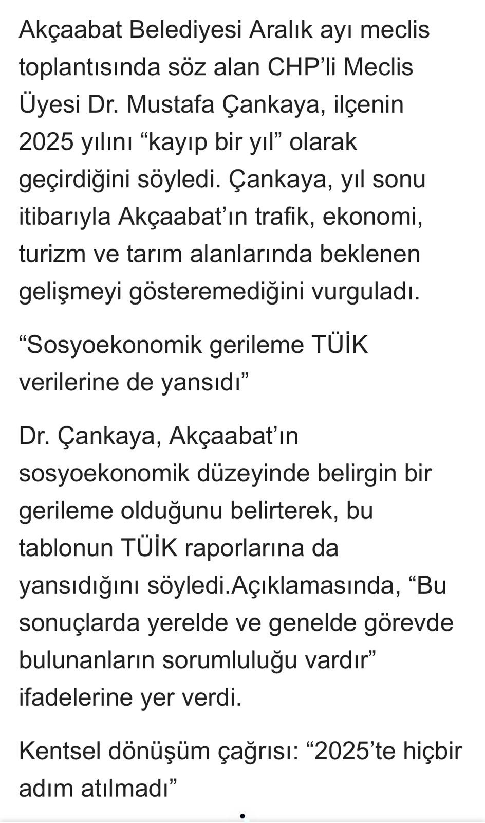 Dt. Çankaya 2025 yılı bizim için kayıp yıldır.