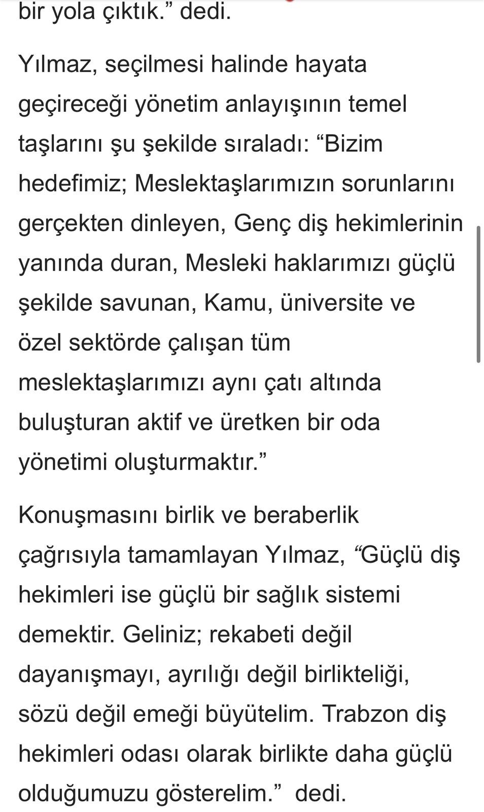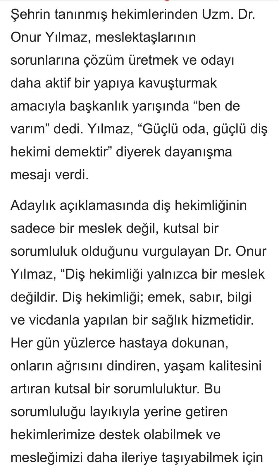 Dt. Yılmaz Başkanlığı adayım dedi