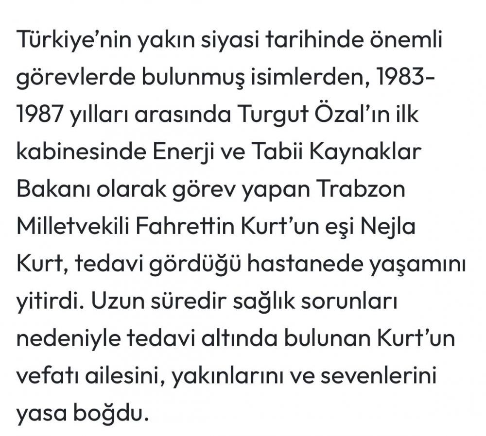 Eski bakan Kurt’un eşi Necla kurt Hakk’a yürüdü.