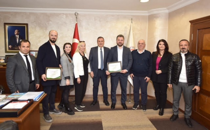 TTSO Avrupa İşletmeler Ağı Projesi kapsamında Eskişehir Sanayi Odası iş birliği ile firmalara 29 Şubat – 1 Mart tarihleri arasında Avrupa Yeşil Mutabakat ve Sınırda Karbon Vergisi Düzenleme Mekanizması eğitimi verildi. Eğitimin ardından katılımcı firmalar arasından seçilen Çağlar Ambalaj ve Kahvaltı Dünyası firmalarına Kurumsal Karbon Ayak İzi Hesaplama ve Raporlama Danışmanlığı hizmeti sağlandı. Danışmanlık hizmeti tamamlanan firmalara sertifikaları TTSO Başkanı Erkut Çelebi tarafından takdim edildi.