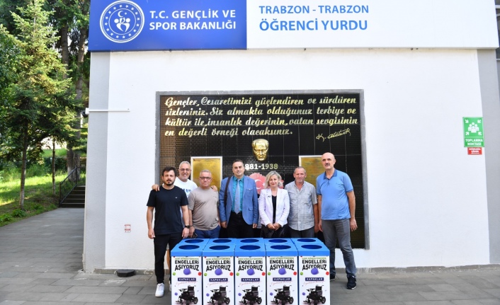 Ortahisar Belediye Başkanı Ahmet Kaya’nın çevre bilinci ve geri dönüşümünün önemine dikkat çekmek amacıyla başlattığı ‘Geri Dönüştürerek Engelleri Aşıyoruz’ kampanyası devam ediyor. Toplanan kapaklar ile engelli bireylere tekerlekli sandalye alınan kampanyaya, vatandaşların yanı sıra kamu kurumları da destek veriyor. Bu kapsamda Trabzon Yurt Müdürlüğü personeli tarafından toplanan 10 çuval mavi kapak, Ortahisar Belediyesi Etüd Proje Müdürü Mustafa Özer İskender tarafından teslim alındı.
