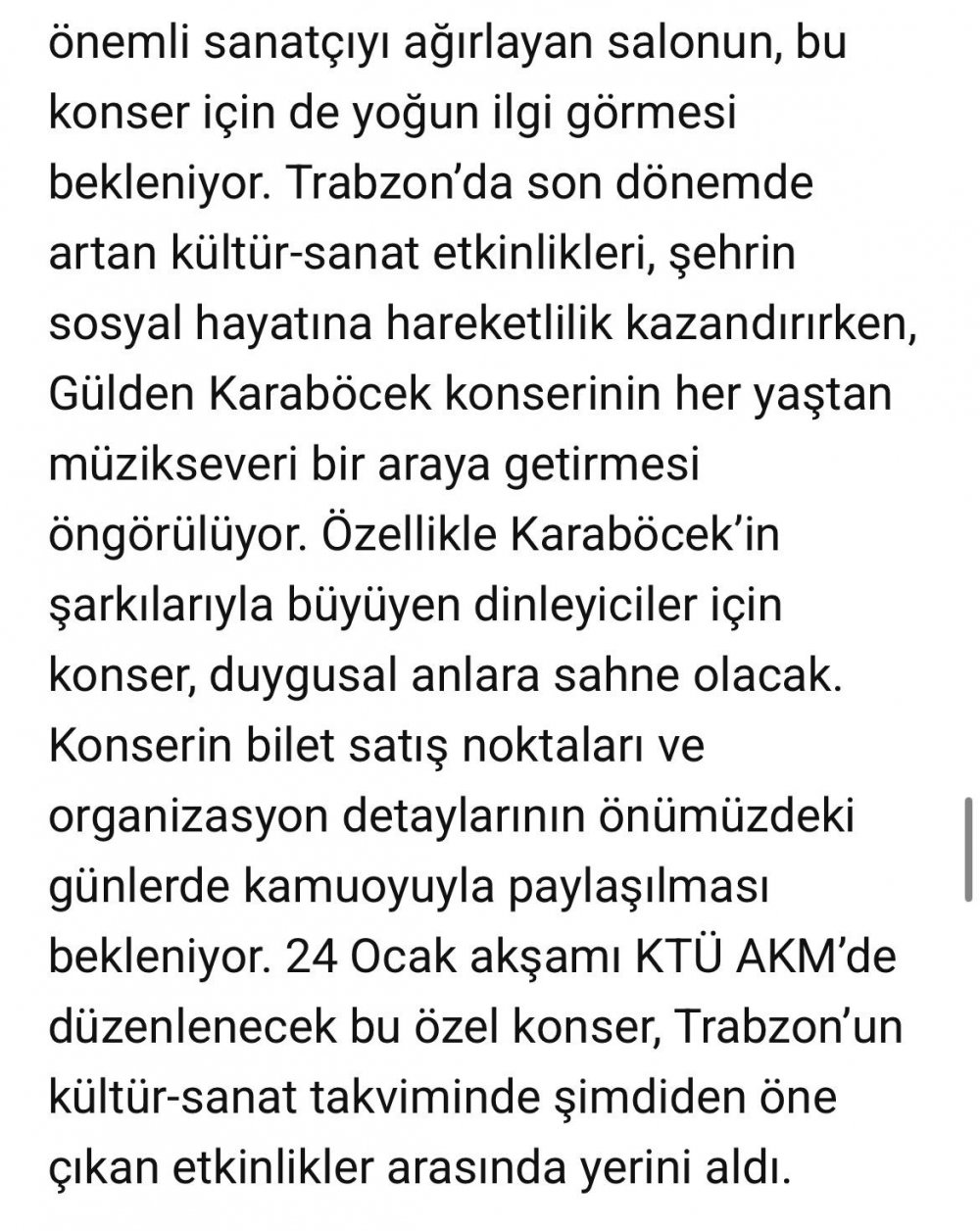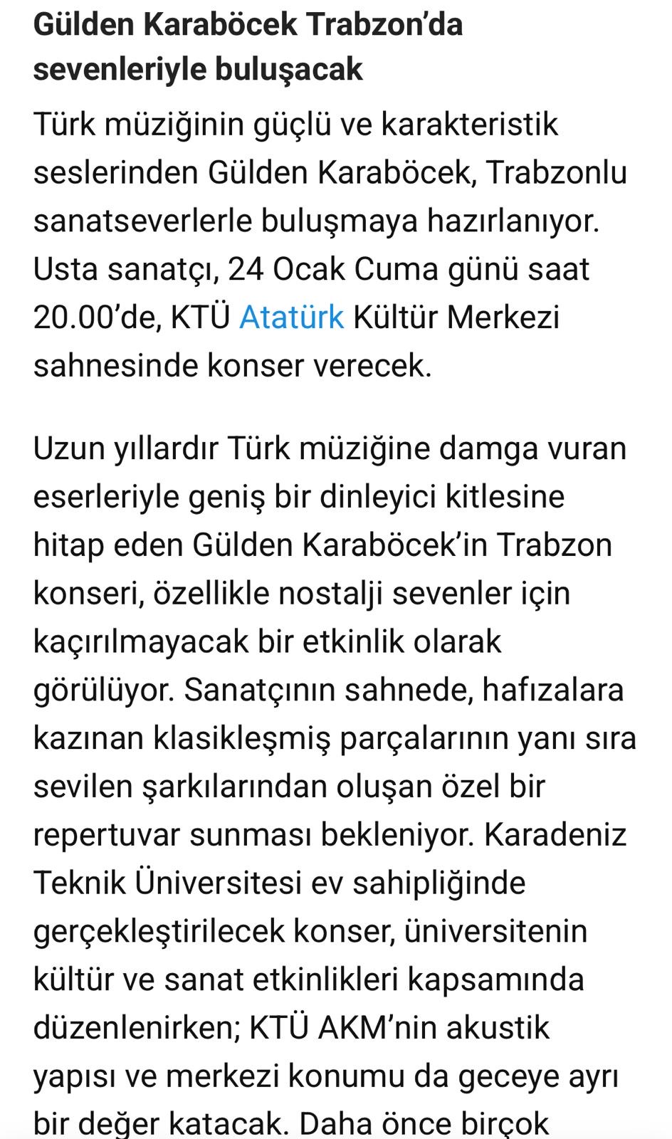 Gülden Karaböcek Trabzon'da sevenleriyle buluşacak