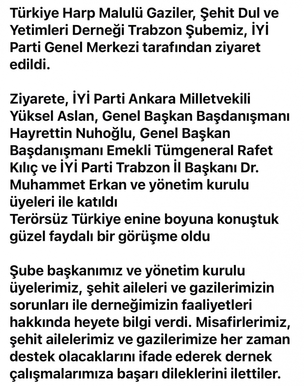 İYİ partiden Harp malullü gaziler Şehit,dul ve yetimler derneğini ziyaret.