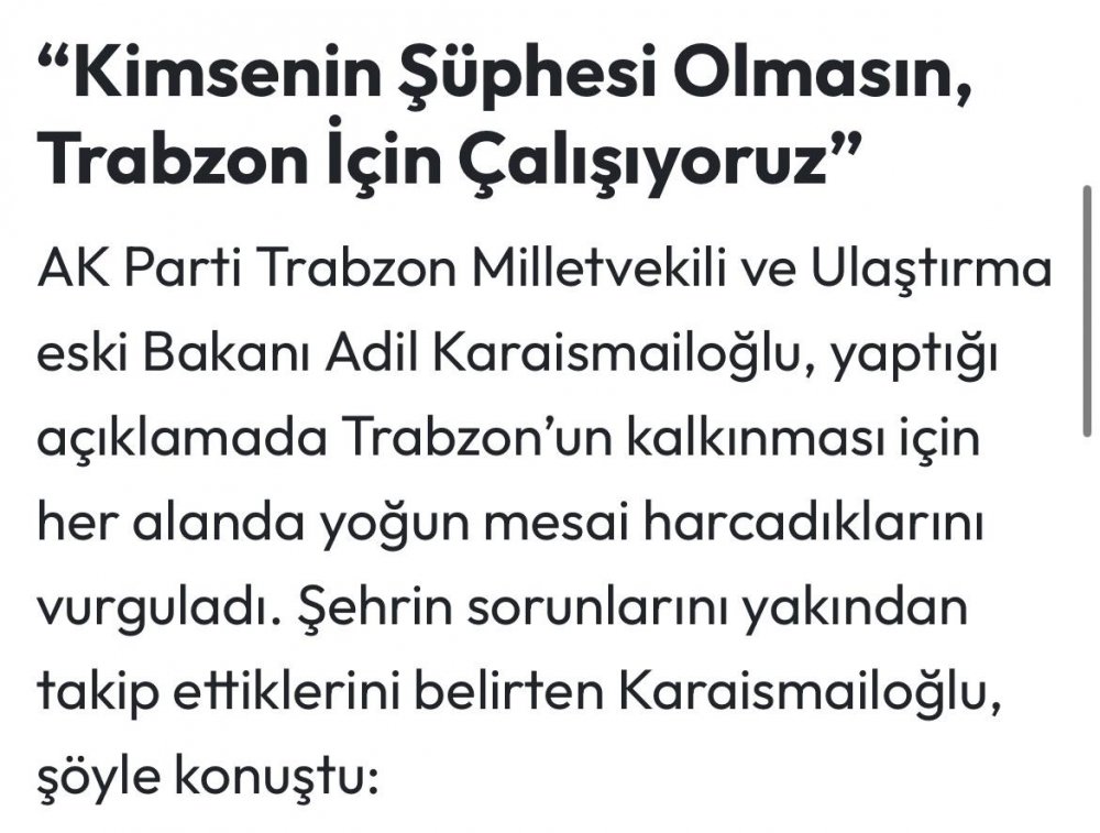 "Kimsenin Şüphesi Olmasın, Trabzon İçin Çalışıyoruz"