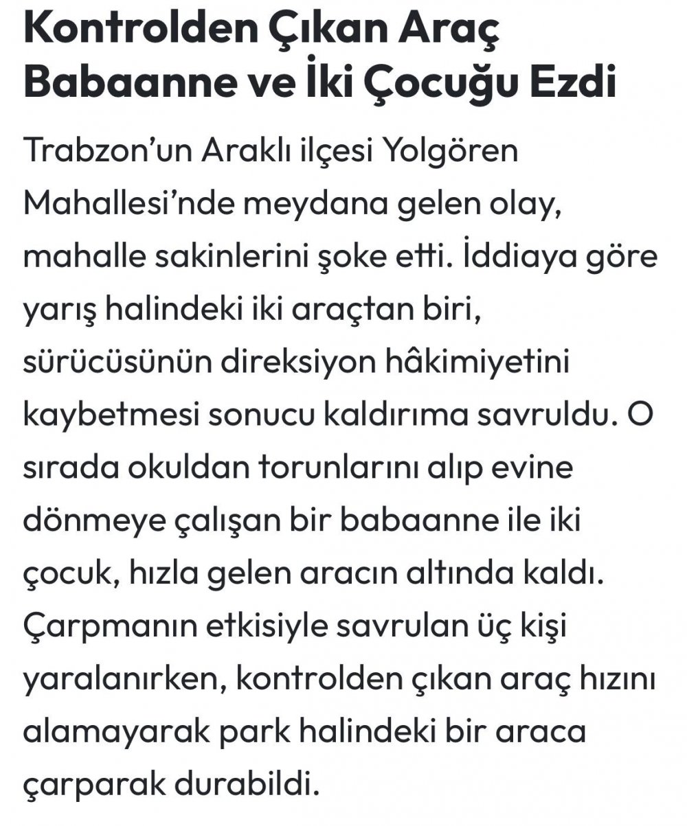 Kontrolden Çikan Araç Babaanne ve Iki Çocuğu Ezdi