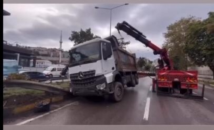 Kamyon Ters Döndü, Trafik Felç Oldu Trabzon'un Ortahisar ilçesi Çömlekçi Mahallesi'nde meydana gelen trafik kazası büyük bir kaosa yol açtı. Bir hafriyat kamyonu, hızla giderken kontrolünü kaybedip orta refüje çarptı ve ters döndü. Kamyonun yan yatmasıyla birlikte yol tamamen kapandı ve trafikte uzun kuyruklar oluştu. Kaza, hem araç sürücüleri hem de mahalle sakinleri için büyük bir tehlike oluşturdu. Kazanın ardından trafik durma noktasına geldi. Özellikle havalimanı yönüne giden yol, kamyonun yan yatması nedeniyle kilitlenerek büyük bir kuyruk oluşturdu. Olay yerine gelen trafik ekipleri, duruma müdahale ederek trafiğin tekrar normale dönmesi için çalışmalarını sürdürdü. Kamyonun çekilmesiyle birlikte yol yeniden açıldı ve trafik akışı normale döndü. Kazada herhangi bir yaralanma yaşanmaması ise olayın sevindirici tarafı oldu. Ancak, kazanın daha büyük bir faciaya yol açmadan atlatılmış olması da dikkat çekti. Kazanın Sebebi Araştırılıyor.