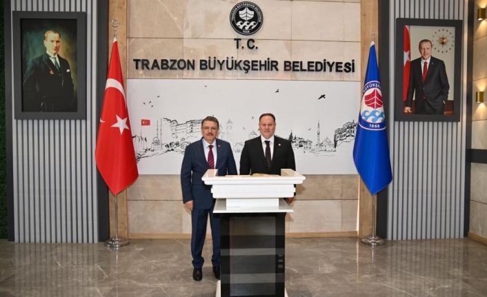 KKTC meclis başkanı ziya Öztürkler ve Trabzon Başkonsolos Fatma Demirel Büyükşehir Belediye başkanı Ahmet Metin Genç’i ziyaret ettiler, meclis başkan Öztürkler şeref defterini imzalayarak doğa ve tarih kenti trabzon’da bulunmaktan duydukları memnuniyeti belirtti.