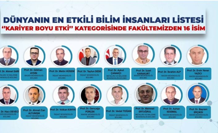 Elsevier veri tabanında yayımlanan “Dünyanın En Etkili Bilim İnsanları Listesine göre “Kariyer Boyu Etki” kategorisinde Karadeniz Teknik Üniversi’nden toplan 24 akademisyen yer alırken bu akademisyenlerin 16 tanesi (% 67)  fakültemiz akademisyeni olup “Yıllık Etki” kategorisinde ise Karadeniz Teknik Üniversi’nden  toplan 36 akademisyen yer alırken bu akademisyenlerin 29 tanesi (% 81) fakültemiz akademisyenlerinden oluşmaktadır. Mühendislik Fakültesi bünyesinde Araştırma-Geliştirme faaliyetlerini gerçekleştirerek “Kariyer Boyu Etki” ve “Yıllık Etki” kategorilerinde listeye giren akademisyen sayısının birçok üniversitenin bu kategorilere yerleşen akademisyen sayısından fazla olması da fakültemiz akademik kadrosunun niteliğini açık bir şekilde ortaya koymuştur.