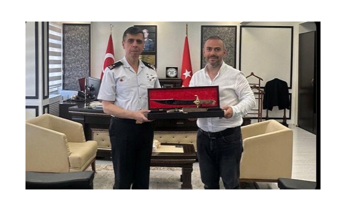 Trabzon il jandarma Komutanlığı görevinden tümgeneralliğe terfi ettirilerek Jandarma genel Komutanlığı personel başkanlığına atanan Tümgeneral Mustafa Erdem’e Sürmeneli bıçak ustası Rasim Özyiğit özel yapım kılıç hediye etti.