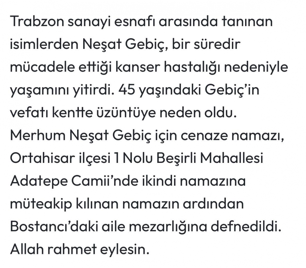 Neşat Gebiç Hakka yürüdü.