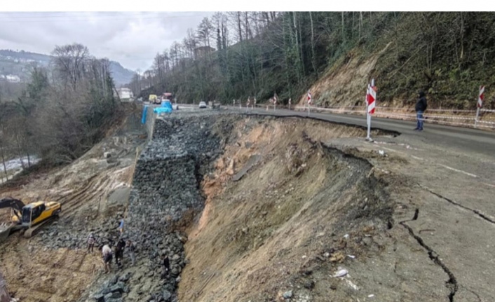 Of-Hayrat karayolunun bir kısmı çöktü.