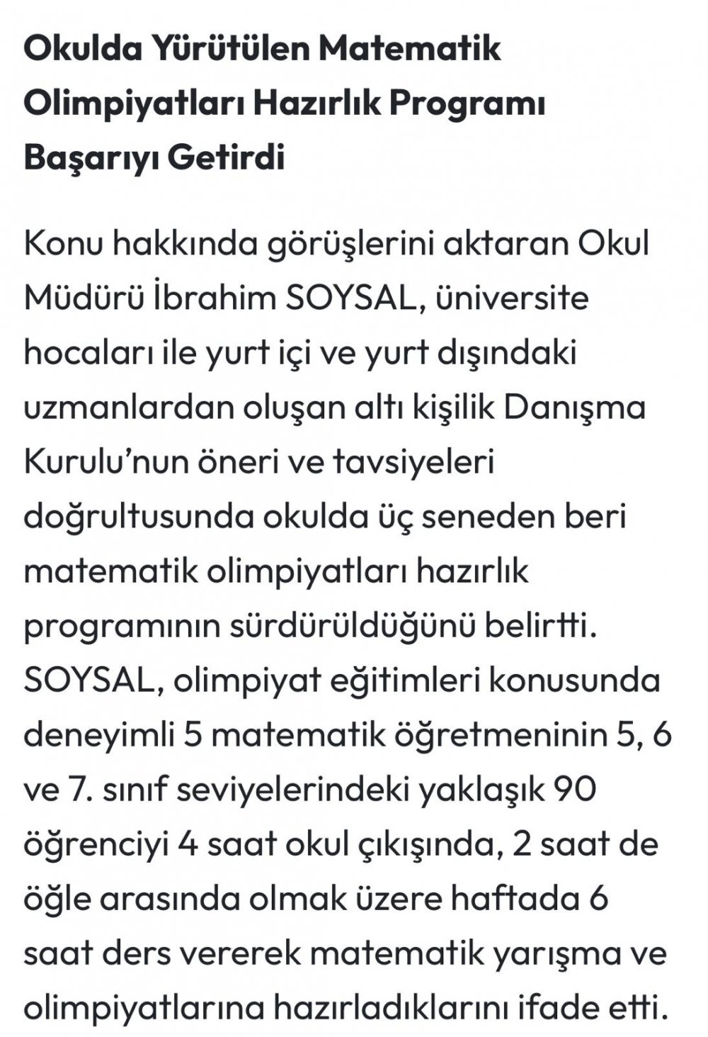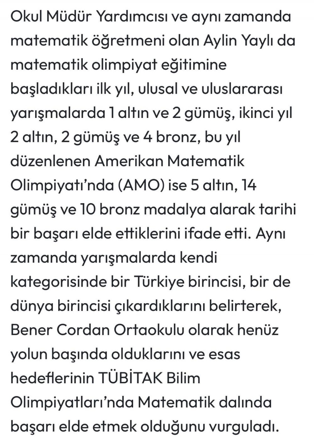 Okulda Yürütülen Matematik Olimpiyatları Hazırlık Programı Başarıyı Getirdi