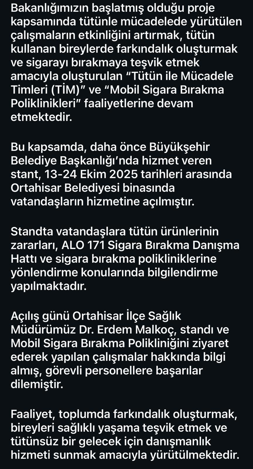 Ortahisar ilçe sağlık Müdürlüğü’nden uyarı