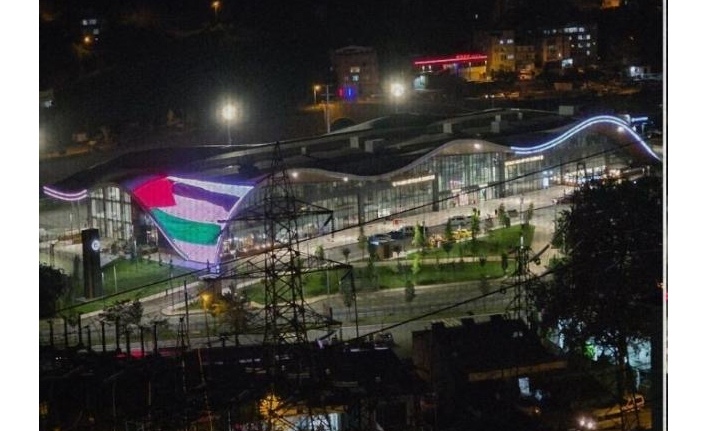 Otobüs terminalinde Filistin bayrağı yansıtıldı