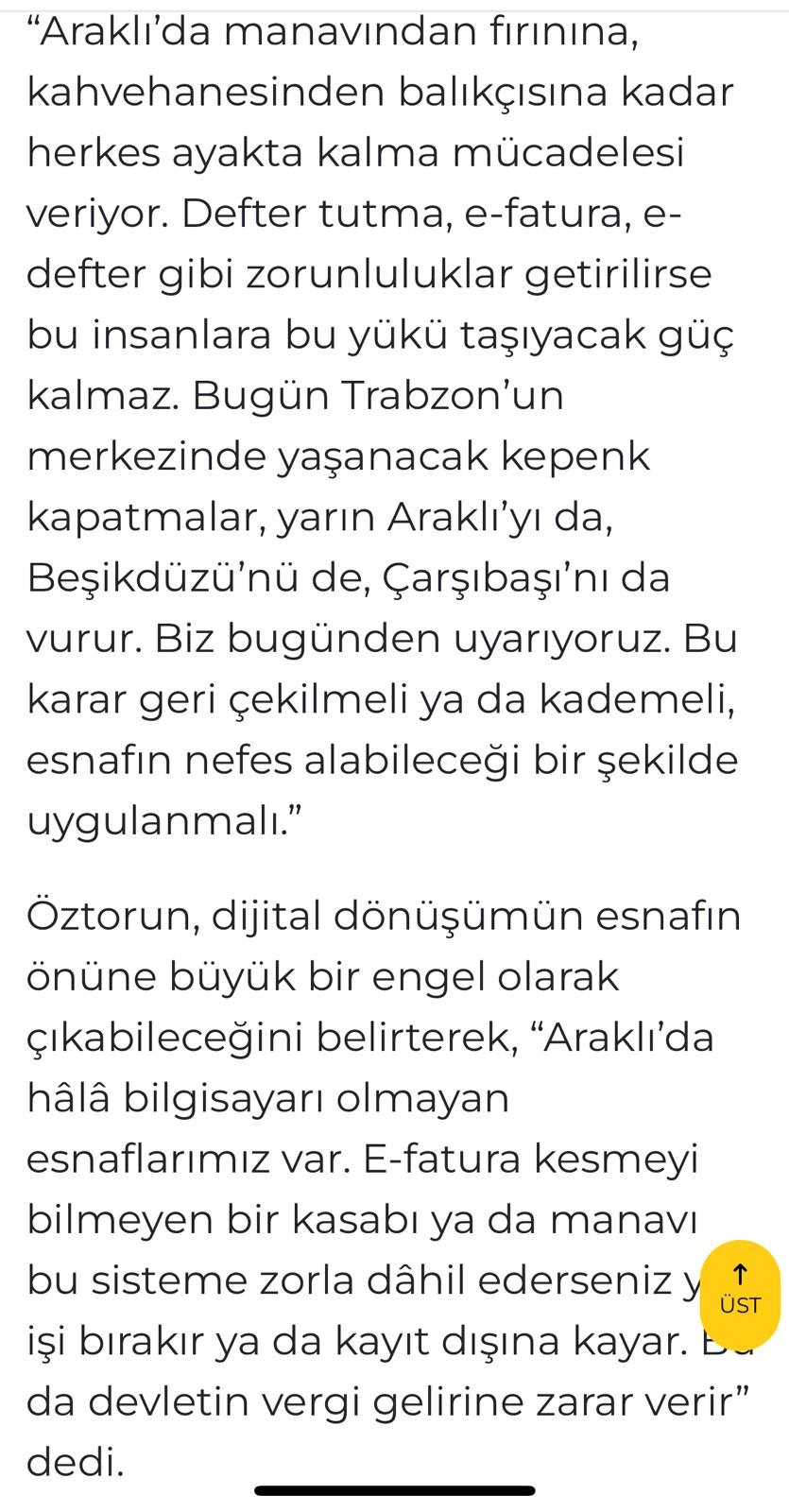 Öztorun bu karar esnafımızı iflasa sürükler.