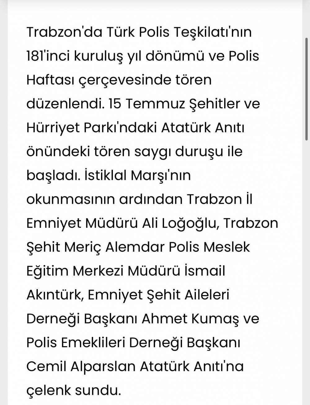 Polis teşkilatının kuruluşunu 181.Yıl dönümü kutlanıyor