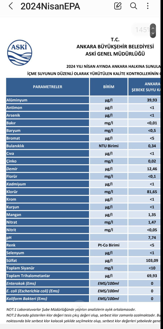 Prof.Dr.TİSKİ’ye yaptığımız uyarının ardından kimsenin kafasını karıştırmayın suyumuz çok temizdir açıklamaları çok düşündürüçüdür oysaki( ABB )Ankara Büyükşehir belediyesi aynı element içeriklerini aylık olarak yayınlamaktadır TİSKİ halka güven vermediği için damacana suyu tek alternatif çözümdür dedi ve ABB’nin aylık yayınladığı raporu örnek gösterdi.