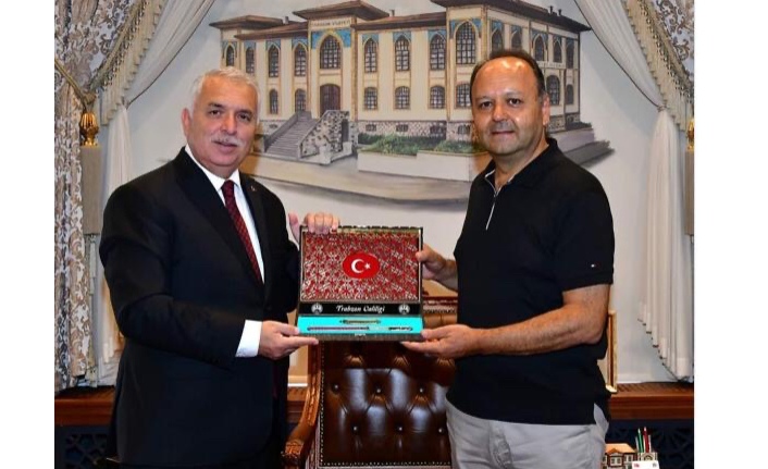 Trabzon Valisi aziz Yıldırım’ı Türk alman Üniversitesi rektörü prof dr cemal Yıldız ziyaret etti,Vali Yıldırım ziyaretin anısına kendisine plaketini takdim etti.