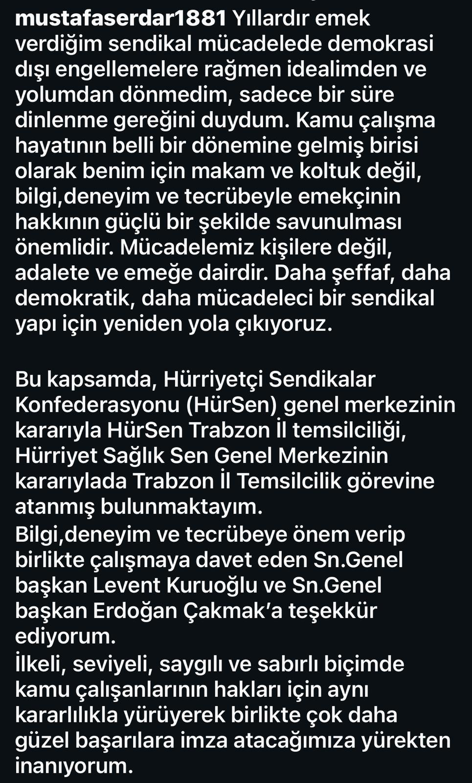 Serdar Hürsen Trabzon il temsilciliğine atandı.