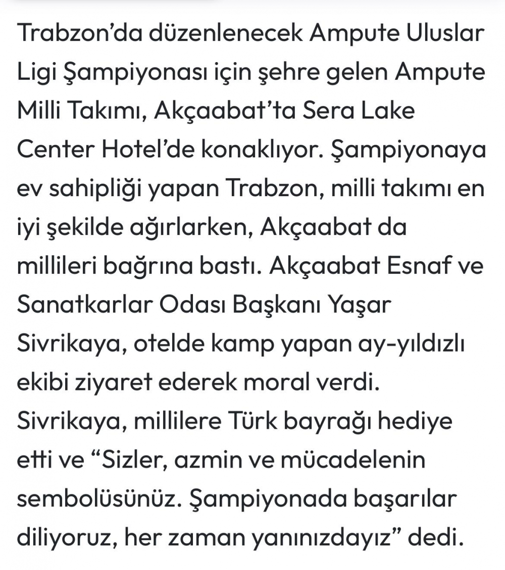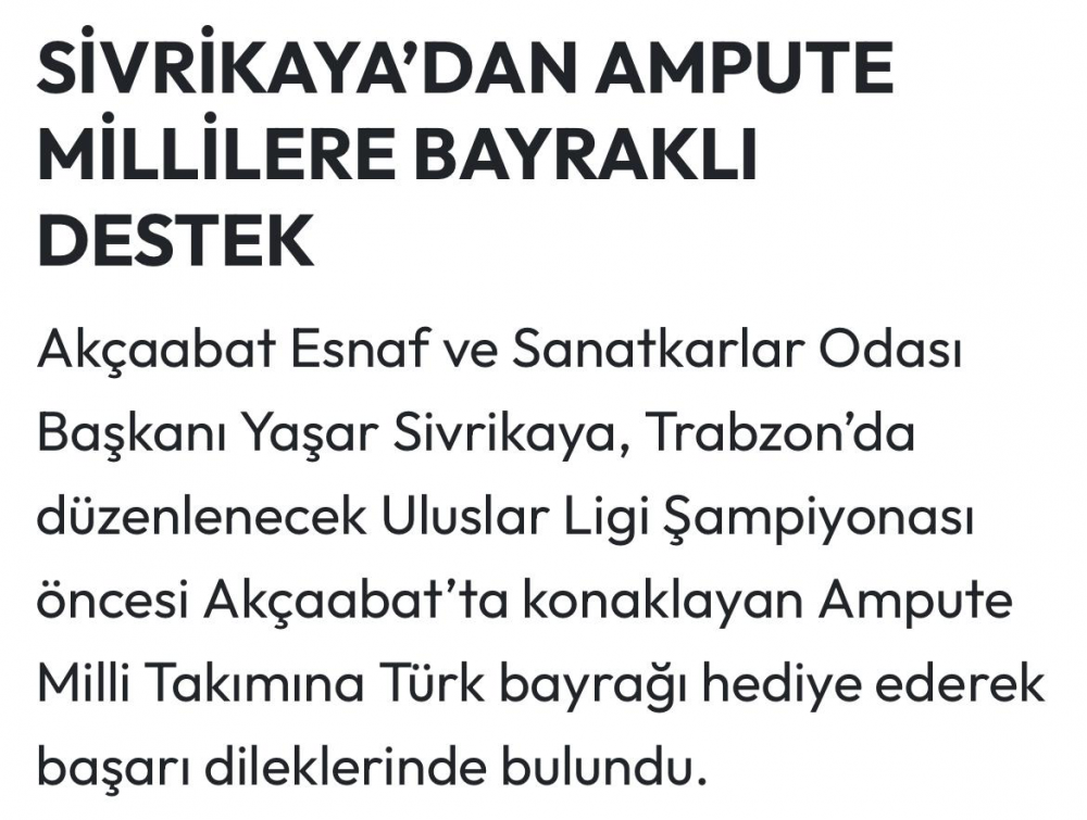 SiVRiKAYA'DAN AMPUTE MILLiLERE BAYRAKLI DESTEK