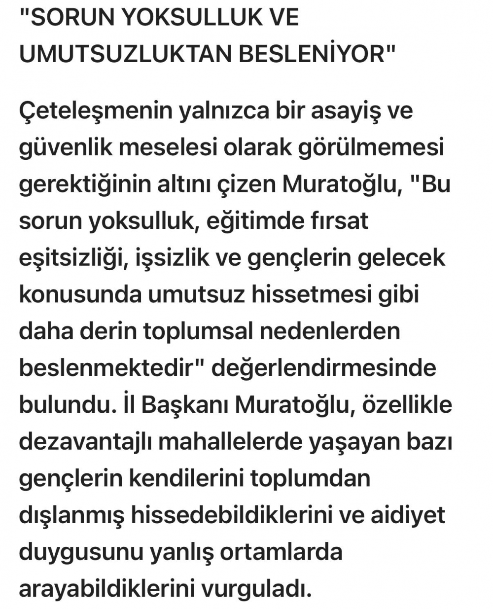 "SORUN YOKSULLUK VE UMUTSUZLUKTAN BESLENİYOR"