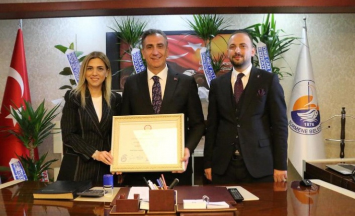 Sürmene belediye başkanlığına seçilen Hüseyin Azizoğlu Mazbatasını alarak bugün göreve başladı