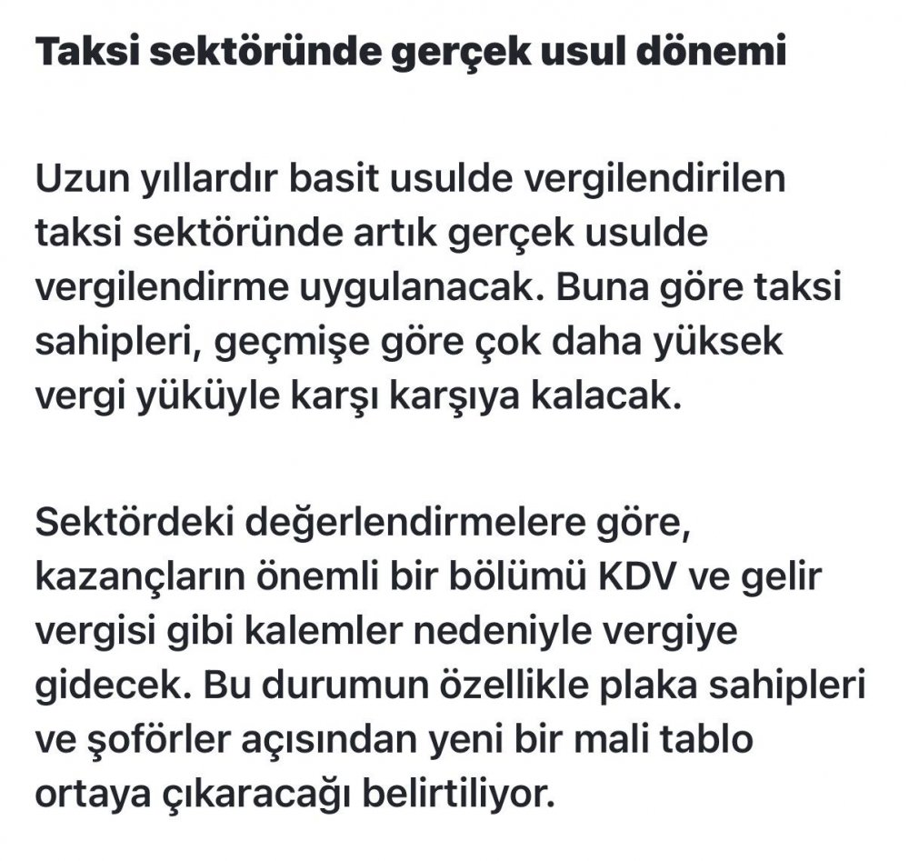 Taksi sektöründe gerçek usul dönemi