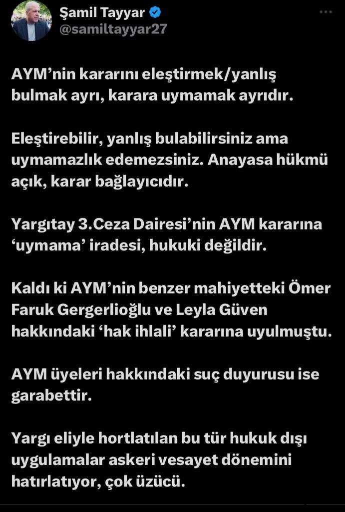 Tayyar Anayasa Mahkemesi kararlarına uymak zorundasınız. Ak Parti Gaziantep eski milletvekili gazeteci yazar Şamil tayyar Yargıtay’ın aldığı karar askeri dönemdeki vesayet kararlarını benziyor dedi .