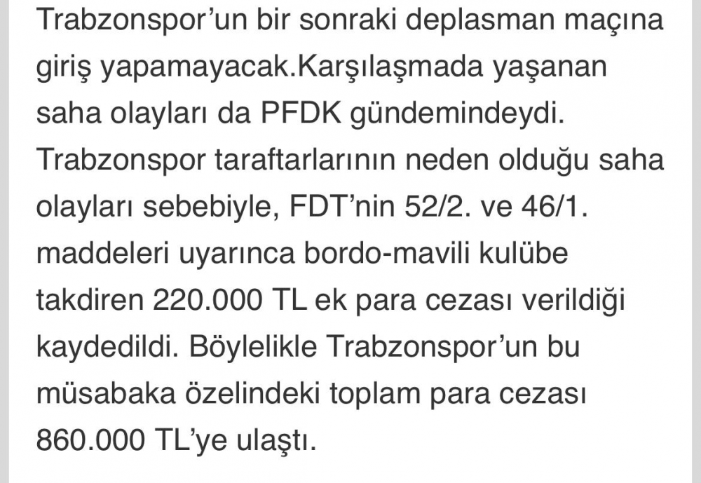 TFF’den TS’ye ceza yağdı.