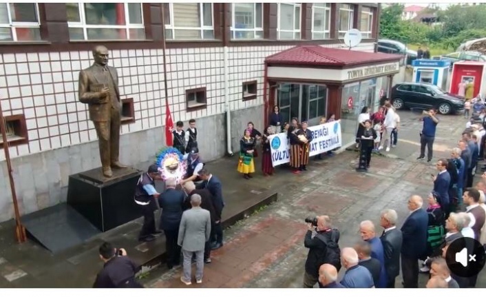 Tonya belediye başkan Osman Beşel ilçe protokolü Atatürk Anıtına Çelenk sunduktan sonra Başlayan Tonya 21. tereyağı Kültür ve sanat festivali çeşitli gösterilere sahne oluyor vatandaşlar çalınan kemençe eşliğinde doyasıya horondan teperken gelenek ve göreneklerini yaşattılar