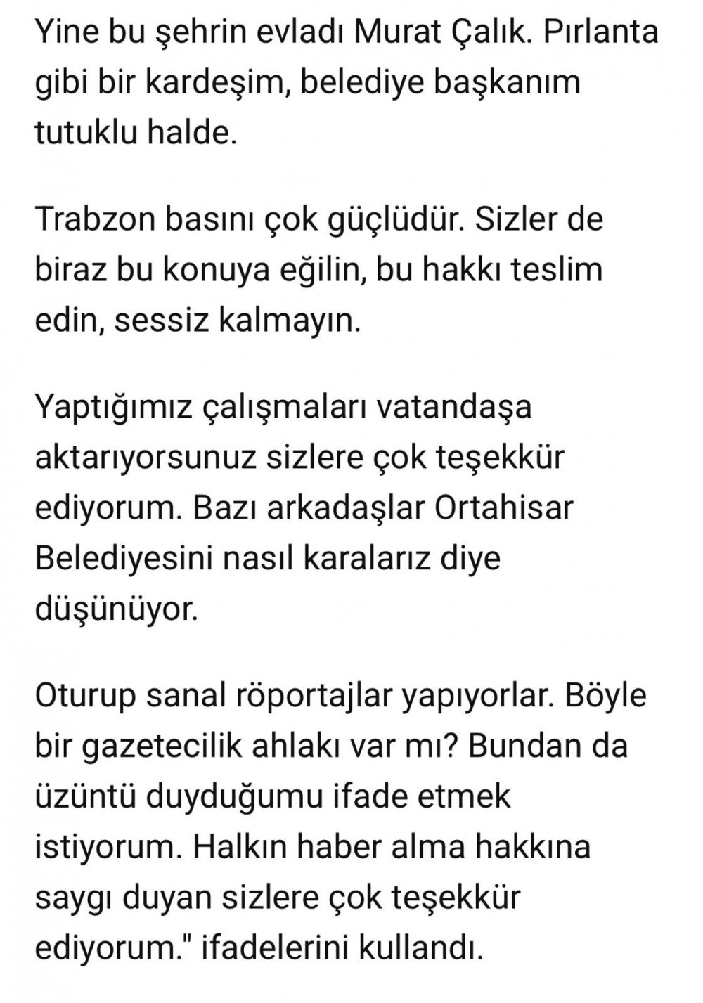 Başkan Genç Trabzon basınına seslendi: