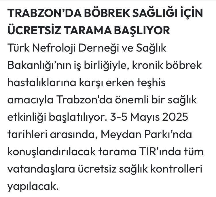 TRABZON'DA BÖBREK SAGLIGI iÇiN ÜCRETSIZ TARAMA BASLIYOR