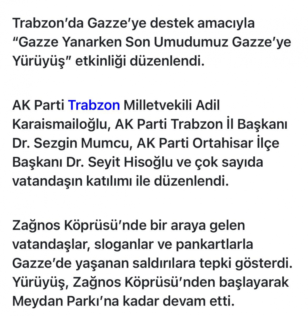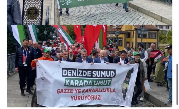 Trabzon'da Gazze'ye destek amaciyla "Gazze Yanarken Son Umudumuz Gazze'ye Yürüyüs" etkinligi düzenlendi.