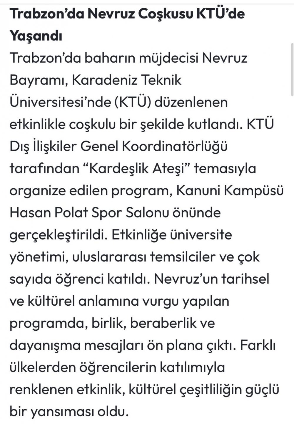 Trabzon'da Nevruz Coşkusu KTÜ'de Yaşandı