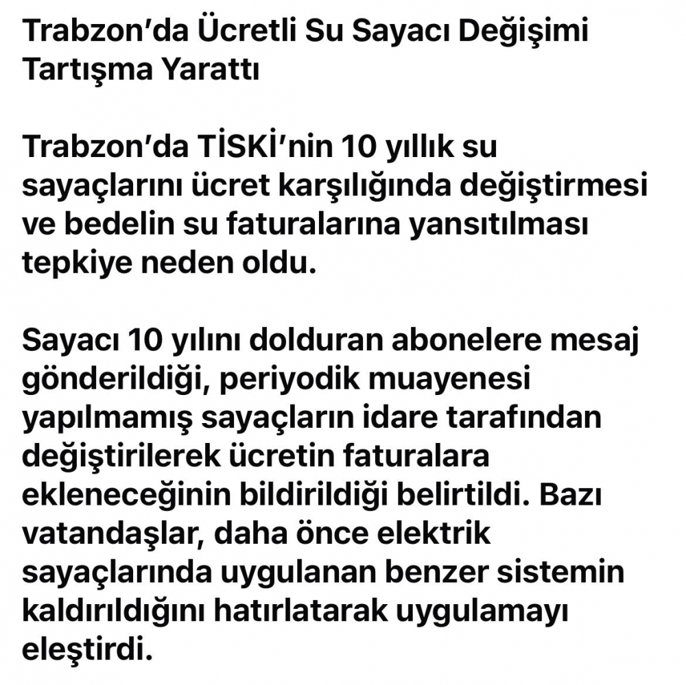 Trabzon'da Ücretli Su Sayacı Değişimi Tartışma Yarattı
