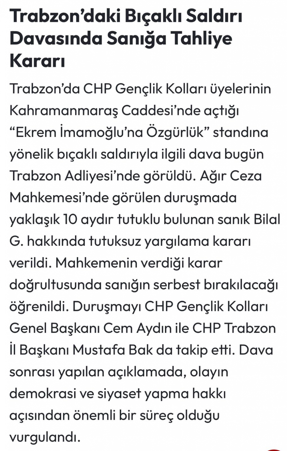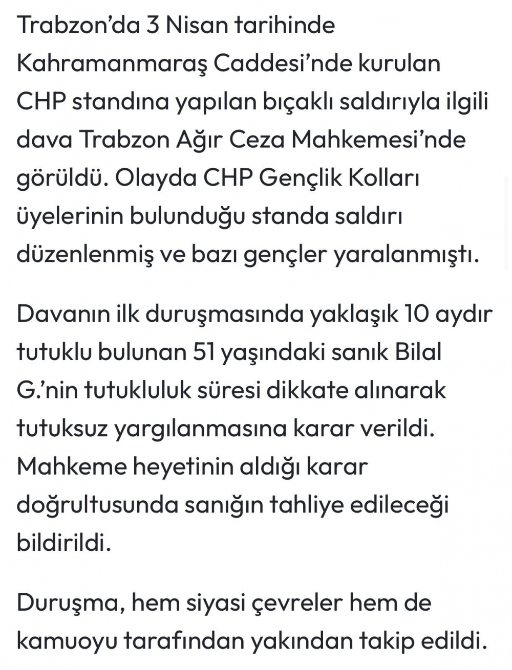 Trabzon'daki Bıçaklı Saldırı Davasında Sanığa Tahliye Kararı