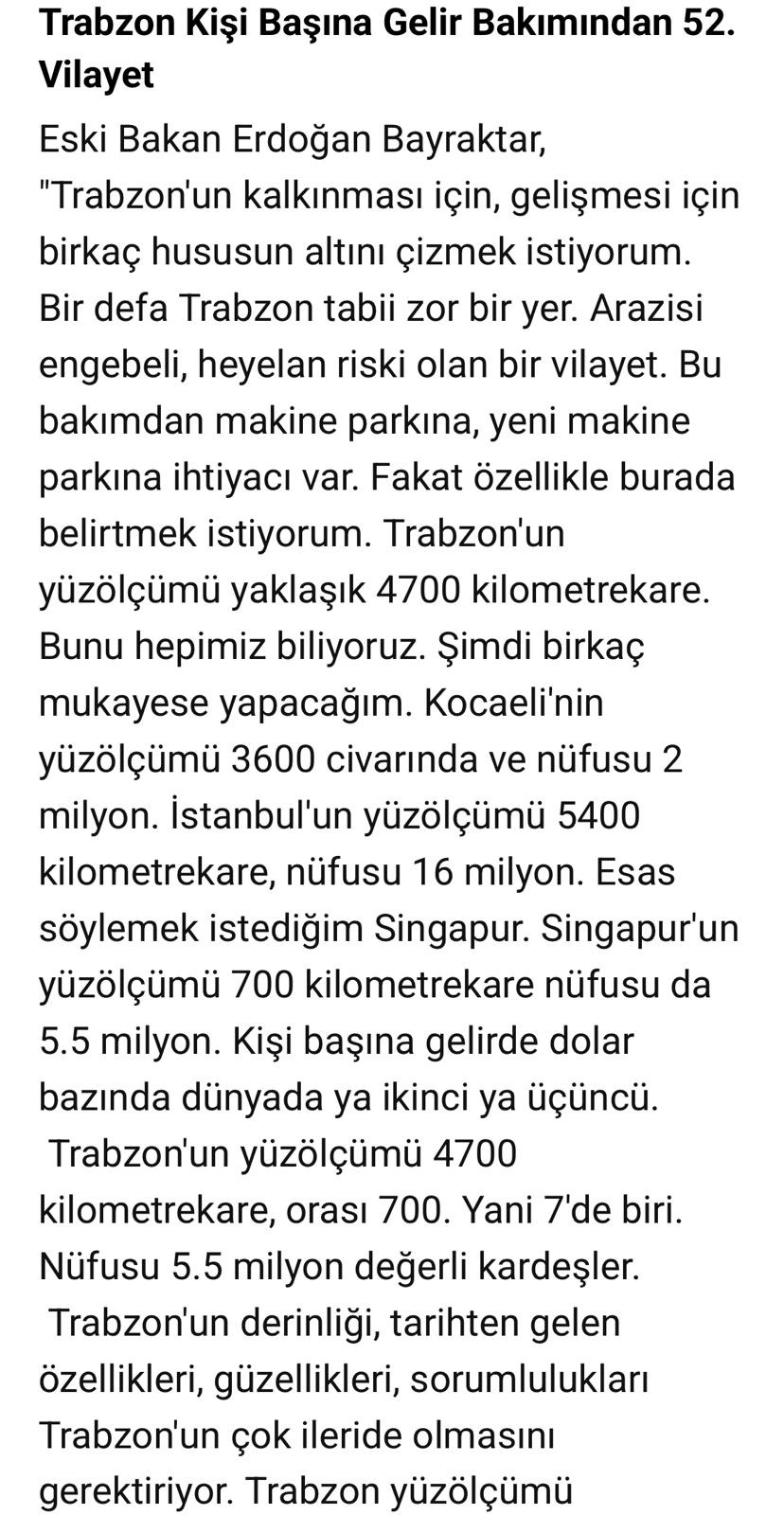 Trabzon Kisi Basina Gelir Bakimindan 52. Vilayet