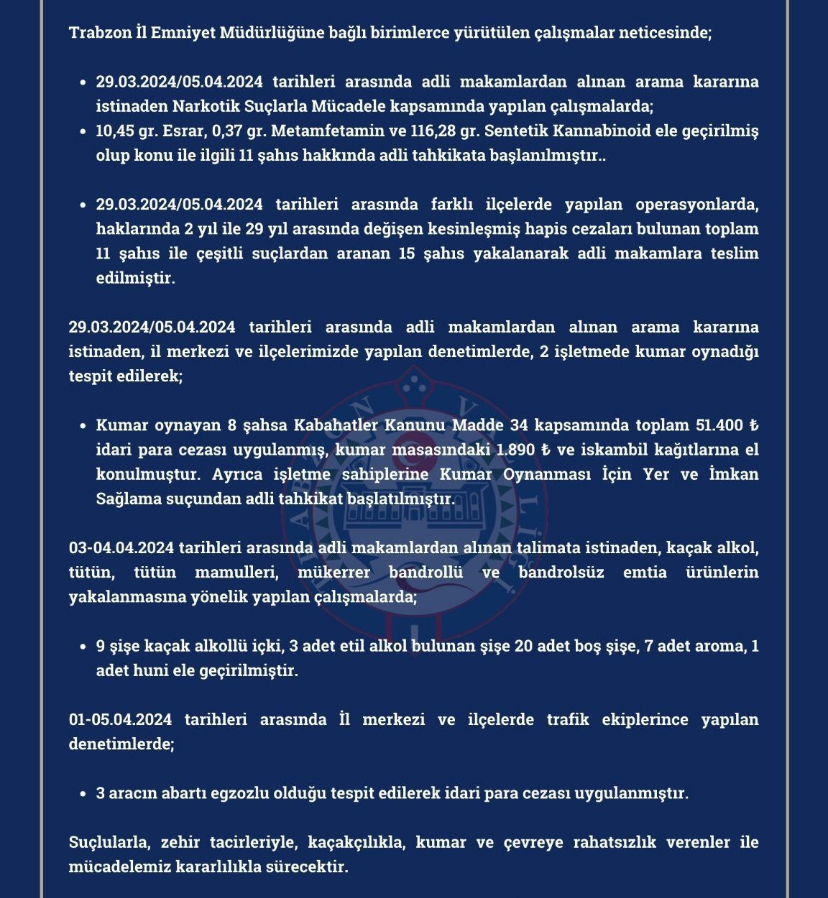 Trabzon polisi uyuşturucu ve kumara göz açtırmıyor