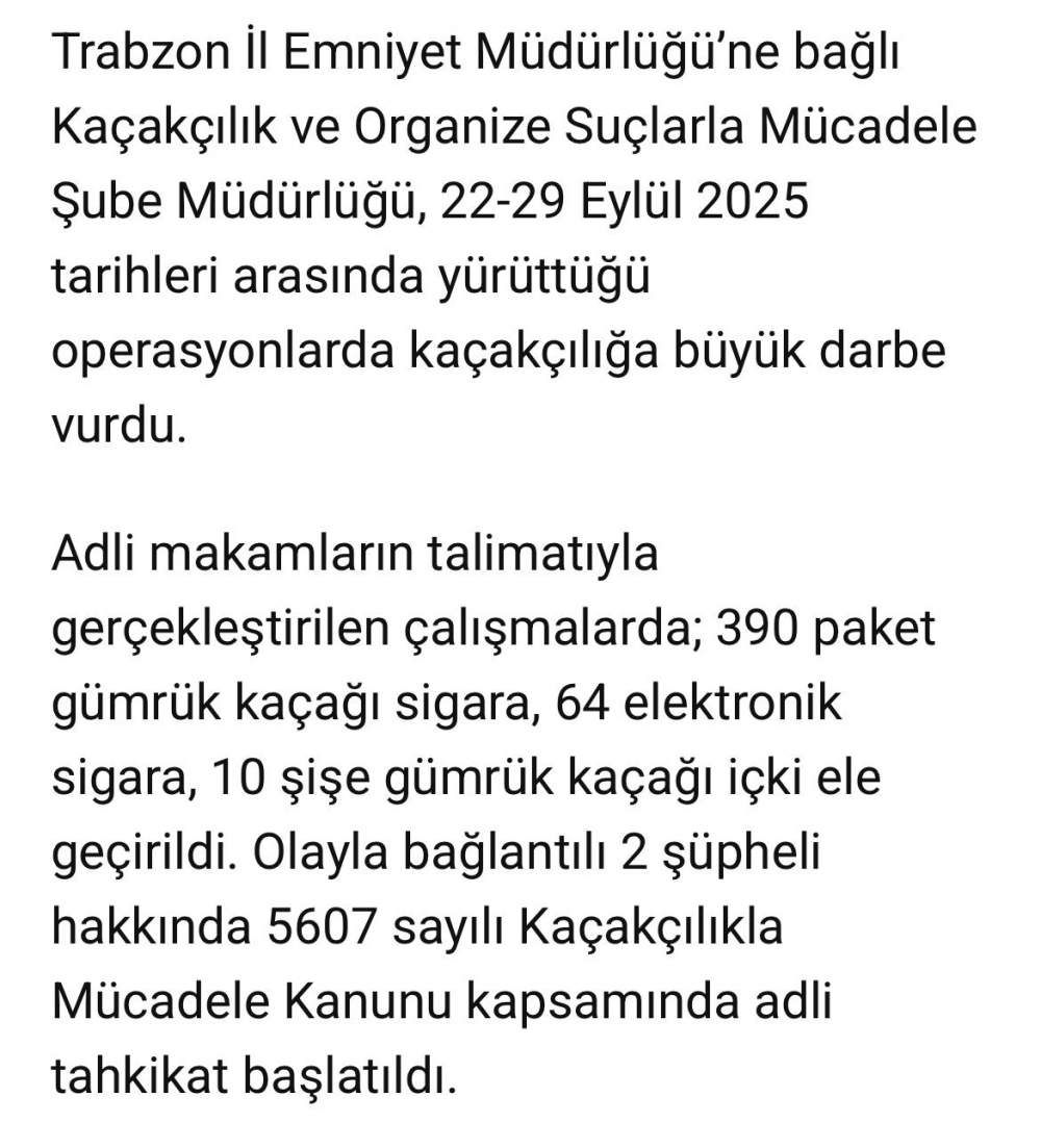 Trabzon polisinden kaçakçılarla büyük darbe