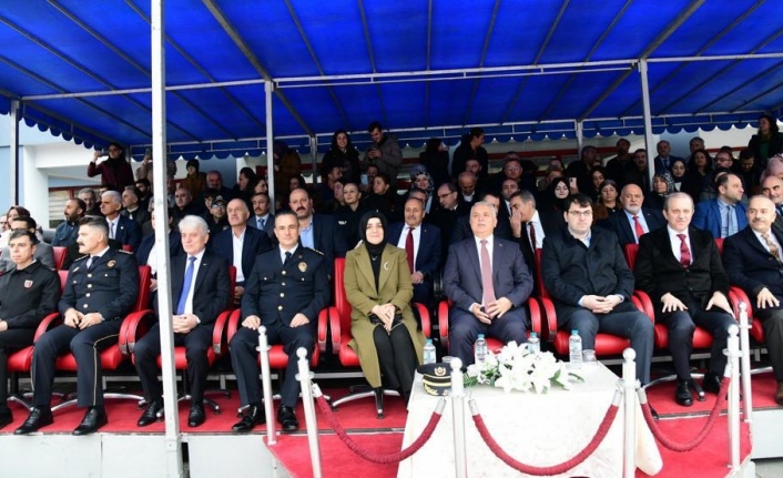 Polis Meslek Eğitim Merkezi’nde gerçekleştirilen törene Trabzon Valisi Aziz Yıldırım Giresun Emniyet Müdürü Recep Güzel Yazıcı İl Jandarma Komutanı Tuğgeneral Mustafa Erdem, İl Emniyet Müdürü Murat Esertürk, Sahil Güvenlik Doğu Karadeniz Grup Komutanı SG Binbaşı Aytaç Bayırlı, il protokolü, siyasi parti ve sivil toplum kuruluşları temsilcileri ve vatandaşlar katıldı