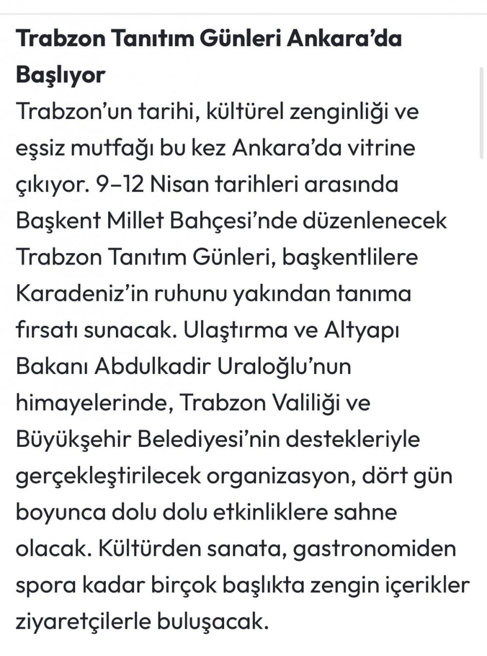 Trabzon Tanıtım Günleri Ankara'da Başlıyor