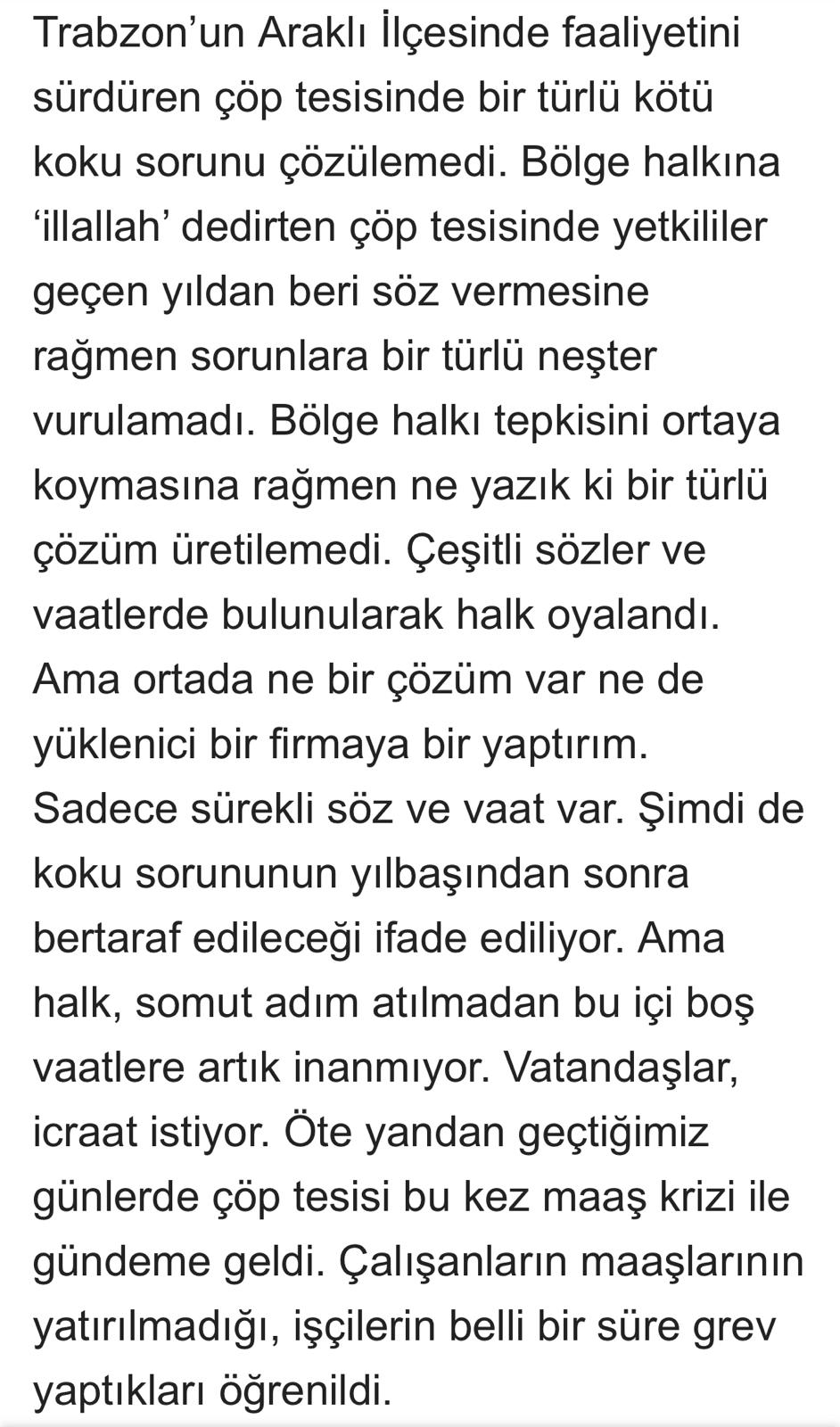 Trabzon'un Arakli ilçesinde faaliyetini sürdüren çöp tesisinde bir türlü kötü koku sorunu çozülemedi.