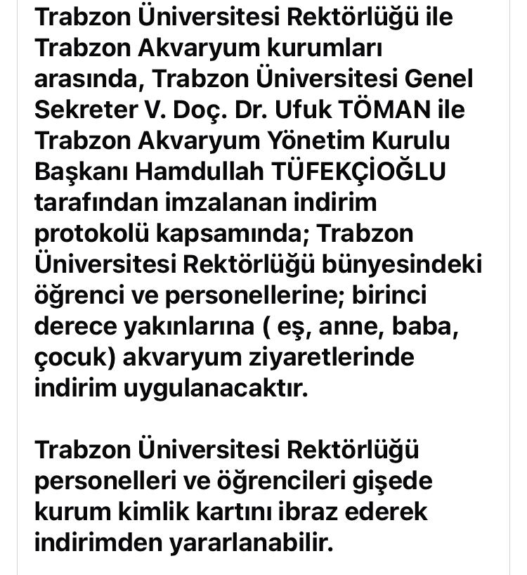 Trabzon Üniversitesi personeli akvaryum’ dan indirimli yararlanacak.