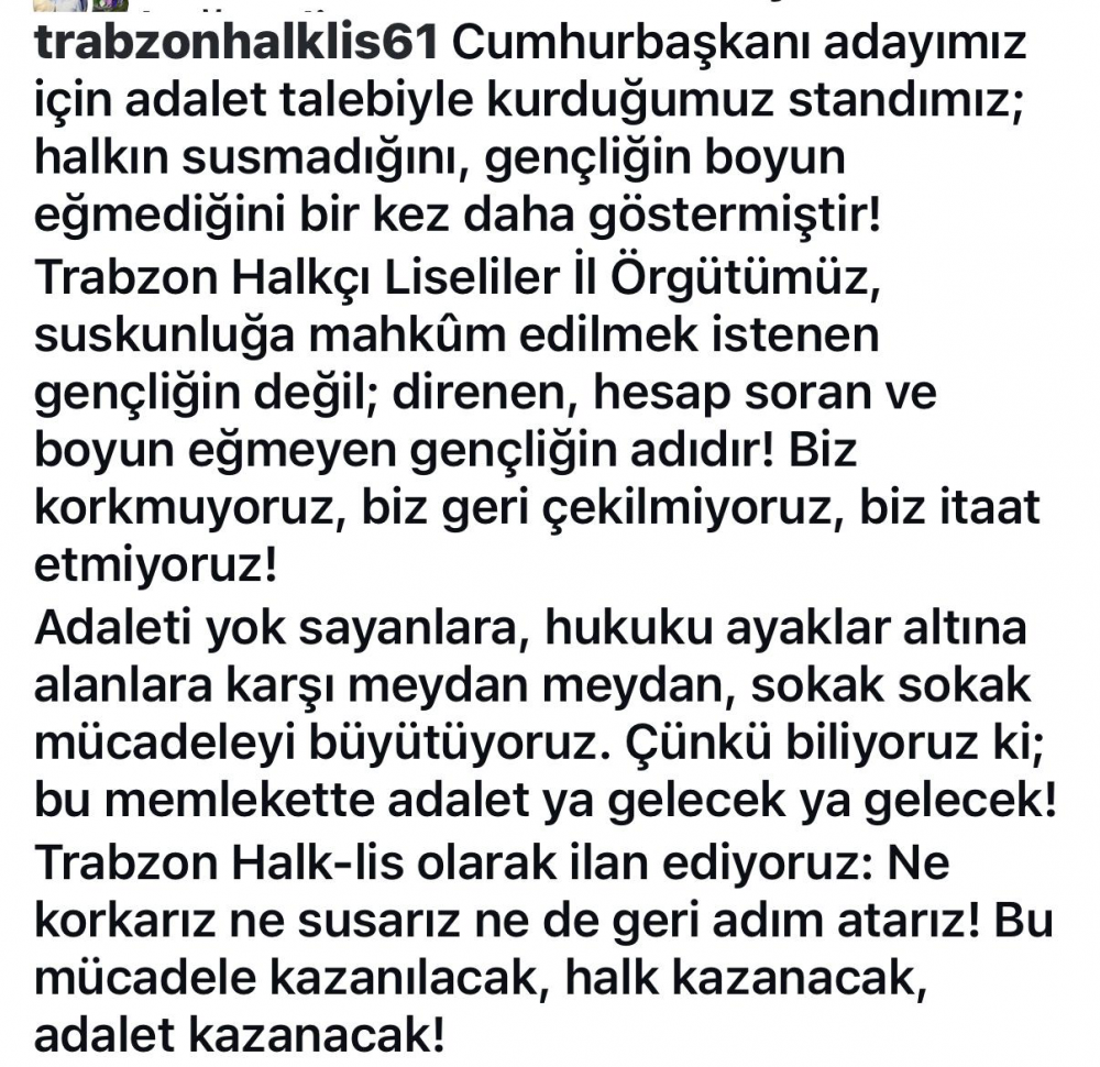 Trabzon’da gençler İmamoğlu‘na destek istediler.