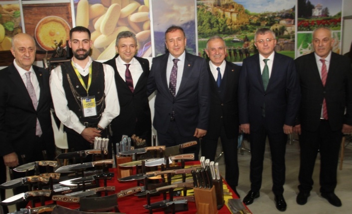 Stantta ziyaretçilere fındık, el yapımı çikolata, coğrafi işaret çalışmaları süren Trabzon Kurabiyesi ikram edildi. Trabzon’un coğrafi işaretli el sanatlarından Sürmene Bıçağı çeşitleri de stantta sergilendi.